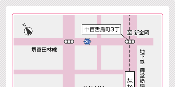 ●地下鉄 御堂筋線 なかもず駅7号出口よりすぐ●南海高野線 中百舌鳥駅 北出口よりすぐ お車でのご来院の方には近隣の時間貸しパーキングに駐車いただきましたら、40分の駐車料金をお支払いします。(駐車券を受付にてご提示ください)
